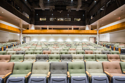 Located on collegiate school's campus in Richmond, Oates Theater has recently undergone a significant renovation. The 25 year old theater received a substantial upgrade including the construction of a new concrete deck shaped like a scallop which now provides the entire audience with a direct view of the center of the stage. Seating was increased from 566 seats to over 700 seats and a balcony was created. Also included were ADA improvements and an updated sound and lighting systems.