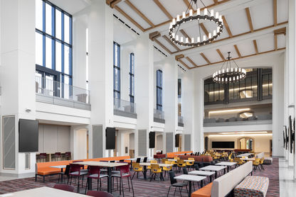 The Data and Decision Sciences Building (D&DS) is one of four buildings on the Virginia Tech campus that encompasses the Global Business Analytics Complex. The structural steel framed D&DS building includes 4 stories plus a penthouse totaling 120,000 SF which is used for ”instructional space and student project spaces bringing together students and faculty from across Engineering, Computer Science, Statistics and other programs that have increasing reliance and emphasis on data sciences, decisions science, and data analytics”. The exterior of the D&DS building has a collegiate gothic architectural style clad in traditional Hokie stone and precast as found on other buildings across the campus.